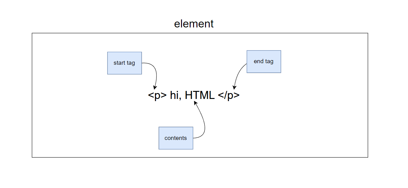 태그(Tag)는 시작 태그(start tag, opening tag)와 종료 태그(end tag, closing tag)의 한 쌍으로 구성되어 있습니다.