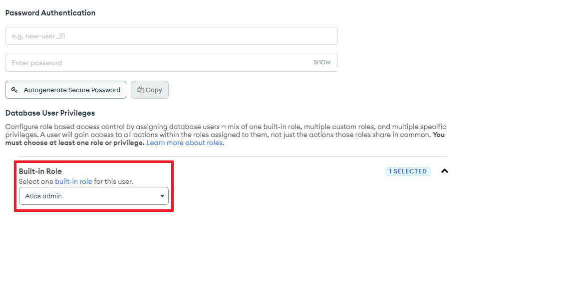 5. Built-in Role이 Altas admin으로 잘 선택되었는지 확인하기