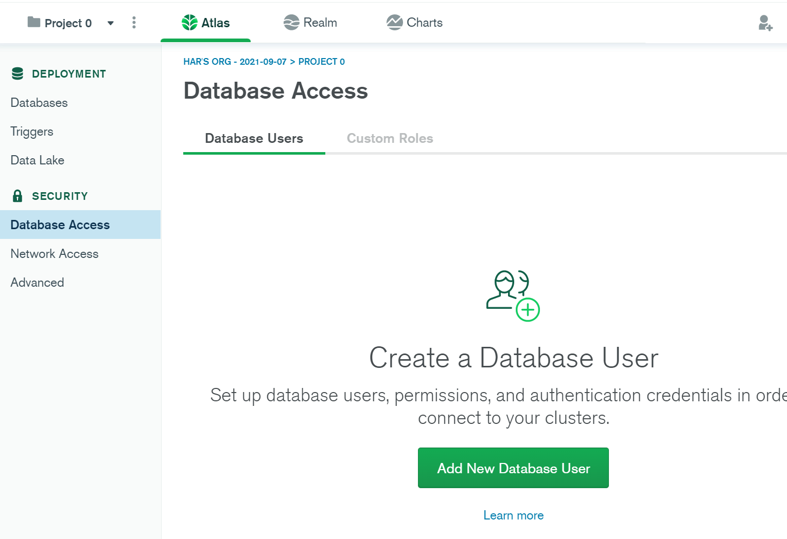 4. Database Access 메뉴에서 DB 접속용 ID/PW 생성