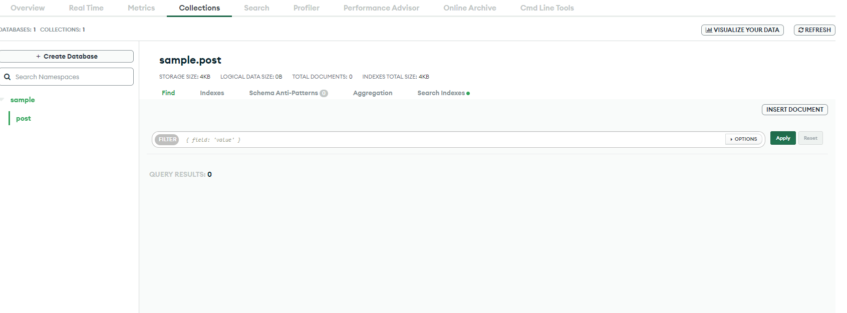 참고로 MongoDB Altas는 무료 클라우드 호스팅 서버로 약 512GB를 제공해준다.