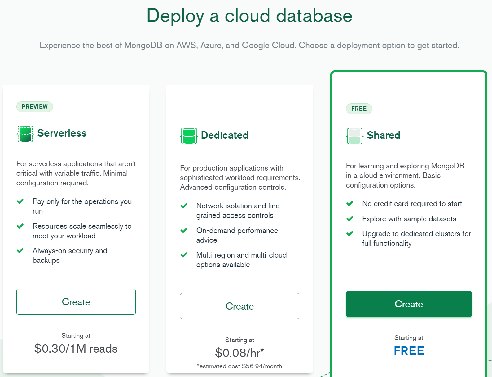Cloud-hosted MongoDB service on AWS, Azure, and GCP